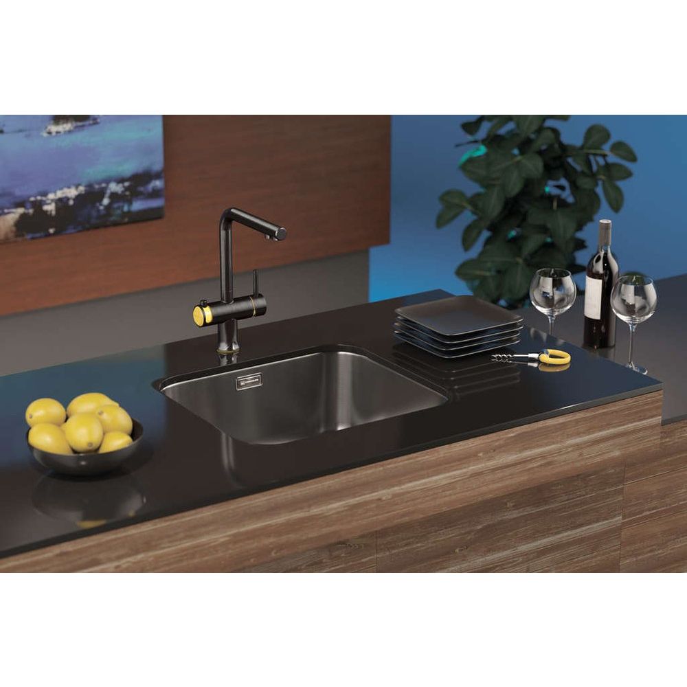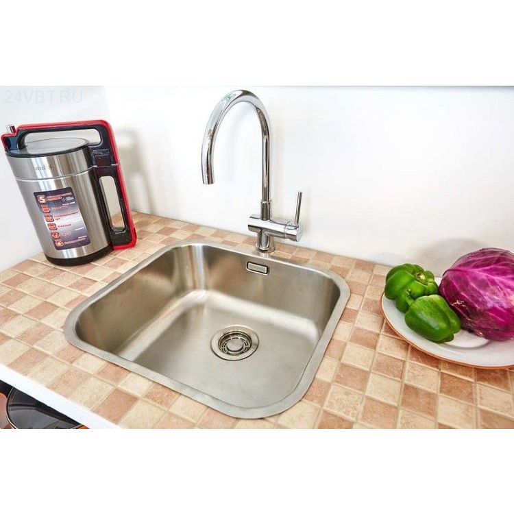 Важно учитывать, что данная мойка монтируется вровень со столешницей, но также может быть установлена выше или ниже ее уровня. Все необходимые аксессуары, включая сифон, уже входят в комплект поставки, что значительно упрощает установку.