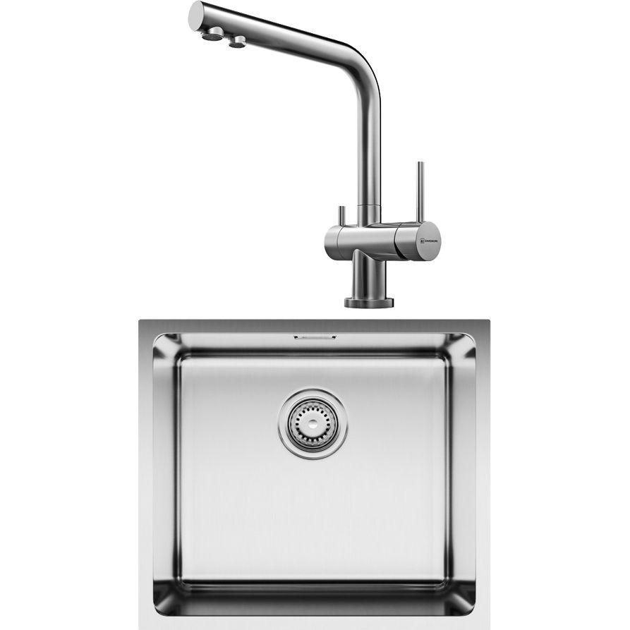 Комплект включает мойку Omoikiri Tadzava 49-U IN с габаритами 49x44x20 см, вместительная чаша размерами 45x40 см обеспечивает комфорт во время использования. Мойка выполнена из полированной нержавеющей стали и может встраиваться как выше, так и ниже уровня столешницы. Она оснащена сливом-переливом, корзинчатым вентилем и сифоном в комплекте, диаметр слива составляет 9 см. В комплект также входит смеситель Omoikiri Nagano BN из латуни с глянцевой поверхностью. Высота излива 26.8 см, длина излива 20.6 см, а также совмещенный излив для фильтрованной воды и керамический картридж делают его идеальным выбором для любой кухни. Смеситель оснащен аэратором и гибкой подводкой для удобства установки.