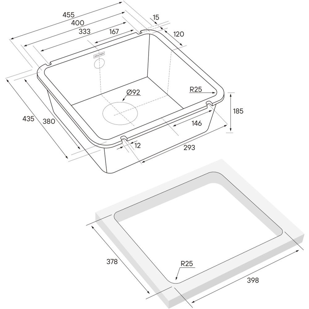 - Габариты мойки: 45,5x43,5x18,5 см, габариты чаши: 40x38 см.