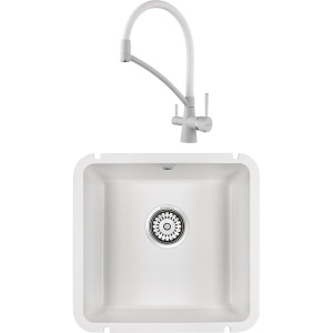 Комплект кухонной мойки и смесителя от бренда Paulmark из коллекции Unter — это идеальный выбор для современной кухни. В стильном белом цвете, он добавит свет и элегантность вашему пространству. Этот комплект не только красив, но и обладает высокой функциональностью: мойка из кварца легко встраивается ниже уровня столешницы, создавая единое целое с поверхностью, а гибкий излив смесителя делает использование более комфортным.