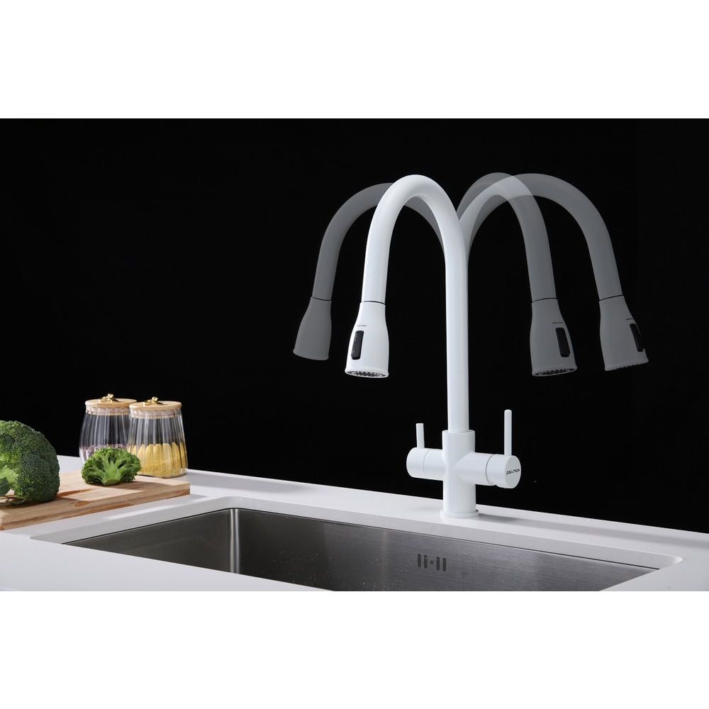 Вам знакома ситуация, когда хочется создать в своей кухне гармонию и уют, но при этом оснастить её функциональным и надёжным оборудованием? Мы рады представить вам наш комплект: кухонная мойка Polygran Argo 760 в цвете "белый хлопок" в сочетании с белым матовым смесителем Paulmark Lange 214212-431. Этот дуэт не только станет стильным акцентом на вашей кухне, но и обеспечит удобство и комфорт в использовании каждый день.
