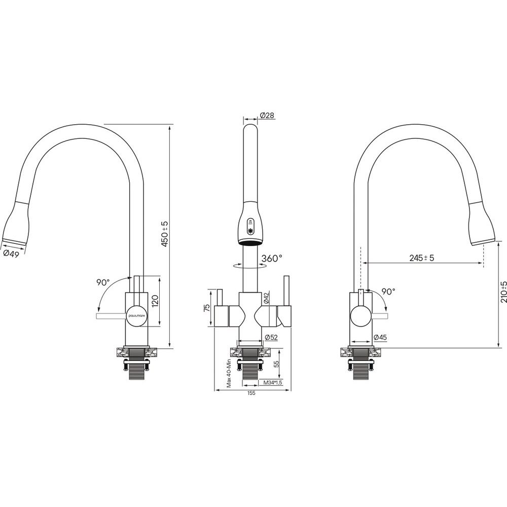 - Функциональность: выдвижной излив и возможность подачи фильтрованной воды.