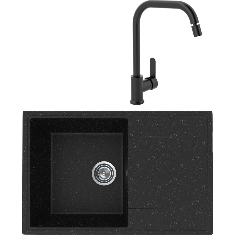Комплект Мойка кухонная Practik PR-M 735-004 в цвете черный оникс с смесителем MEGA City MG-ZRV104-B — это идеальное решение для современной кухни, где стиль и функциональность играют ключевую роль. Эта комбинация предлагает не только эстетическое наслаждение, но и превосходное качество материалов и удобство в использовании. Мойка выполнена из искусственного мрамора с глянцевым покрытием, а смеситель оснащен передовыми технологиями для экономии и комфорта, включая WaterECO и вращающийся аэратор.