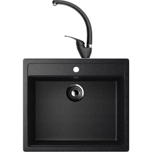Кухонная мойка Ulgran U-104 -308 черная обладает габаритами 56x49,5x17,5 см, с чашей размером 50x37 см, что позволяет встраивать ее выше уровня столешницы. Изготовлена из искусственного мрамора с матовой поверхностью, оснащена слив-переливом и корзинчатым вентилем с диаметром слива 9 см. В комплекте идет одно отверстие под смеситель и сливная арматура. Гарантия на мойку составляет 4 года.