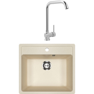 Кухонная мойка Ulgran U-104 представлена в бежевом цвете и выполнена из искусственного мрамора. Ее размеры составляют 56x49,5x17,5 см, при этом чаша имеет габариты 50x37 см. Мойка встраивается выше уровня столешницы и оснащена слив-переливом, корзинчатым вентилем и одним отверстием под смеситель. Гарантия на изделие — 4 года, а производится она в России.