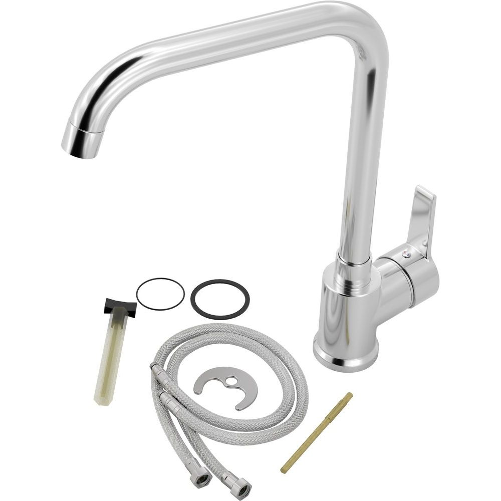 Смеситель MEGA Ege MG-PL10 изготовлен из латунного сплава с хромоникелевым покрытием, излив высотой 21 см и длиной 17 см. С керамическим картриджем, он оснащён аэратором и гибкой подводкой. Крепления идут в комплекте, гарантия на изделие — 5 лет.