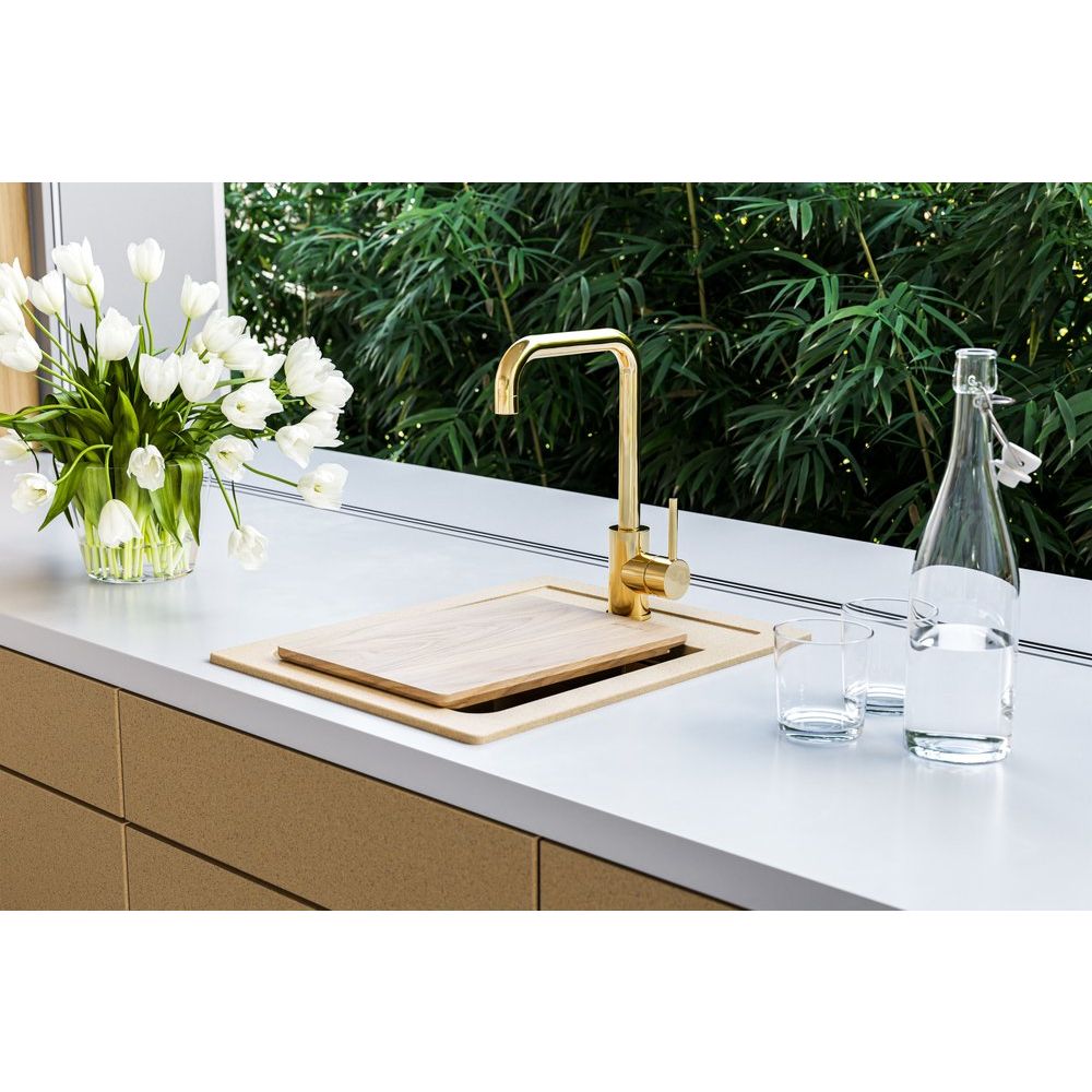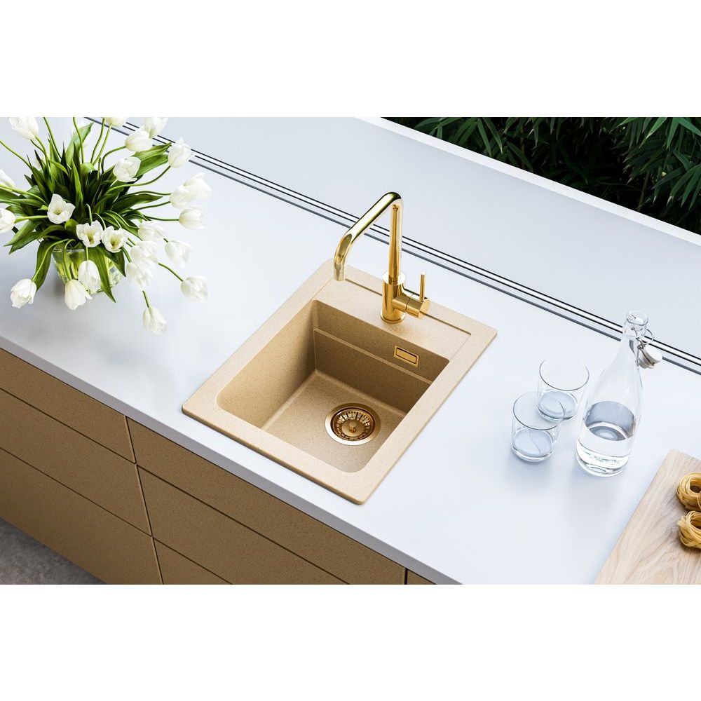 Мойка имеет размеры 40x50x19,5 см и чашу размером 34x35 см, идеально подходит для встраивания выше уровня столешницы. Эстетичная матовая поверхность обеспечивает легкий уход и долговечность. Слив-перелив, оснащение сливной арматурой и сифон уже входят в комплект, что делает установку еще более удобной. Диаметр слива 9 см. Имеется одно готовое отверстие и два намеченных под смеситель. Страна производства — Словения.