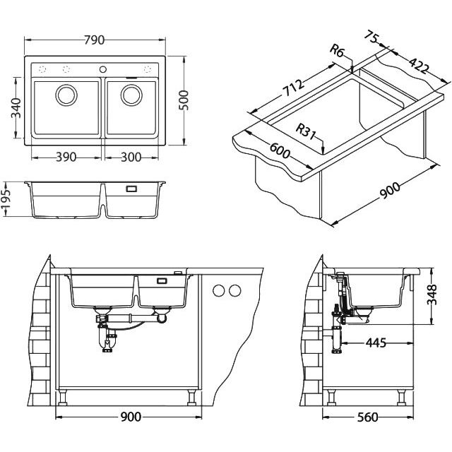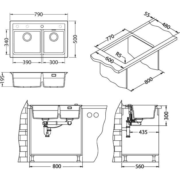 Перед установкой следует учесть, что для создания дополнительных отверстий рекомендуется обратиться к квалифицированным специалистам, чтобы избежать ошибок и повреждения материала. Сифон и вся необходимая арматура входят в комплект, что значительно упростит процесс монтажа. Убедитесь, что размеры мойки подходят для вашей кухни, и она будет функционально вписываться в ваше рабочее пространство.