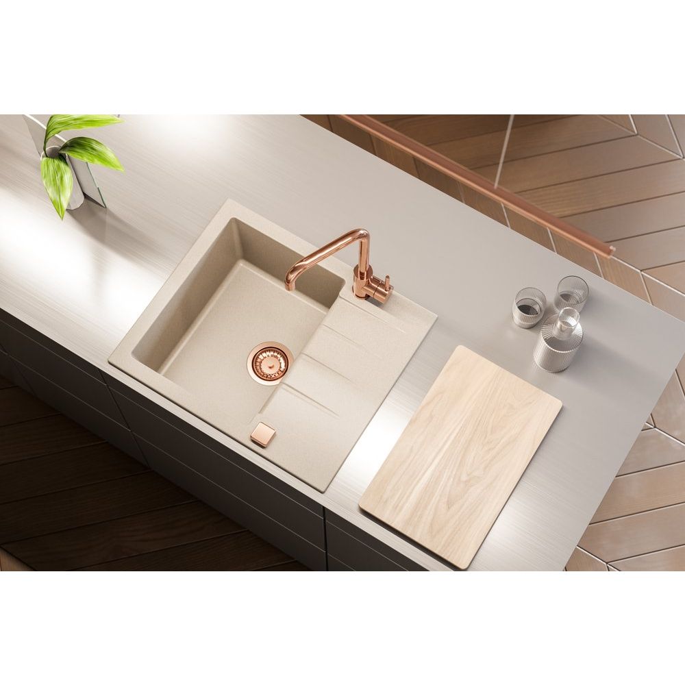 Мойка Alveus Cadit Granital 10 beige создана, чтобы стать сердцем вашей кухни, привнося теплые оттенки и элегантность в любой минималистичный интерьер. Изготовленная из высококачественного искусственного гранита бежевого цвета, эта мойка отличается повышенной устойчивостью к различным внешним воздействиям. Вы можете спокойно сливать горячую воду прямо в чашу без риска повреждения материала. Матовая поверхность мойки предотвращает появление пятен и налета, обеспечивая ее безупречный вид на протяжении длительного времени. Особенности дизайна включают корзинчатый вентиль, слив-перелив с клапаном-автоматом и удобное ребристое крыло для сушки посуды и разморозки продуктов.