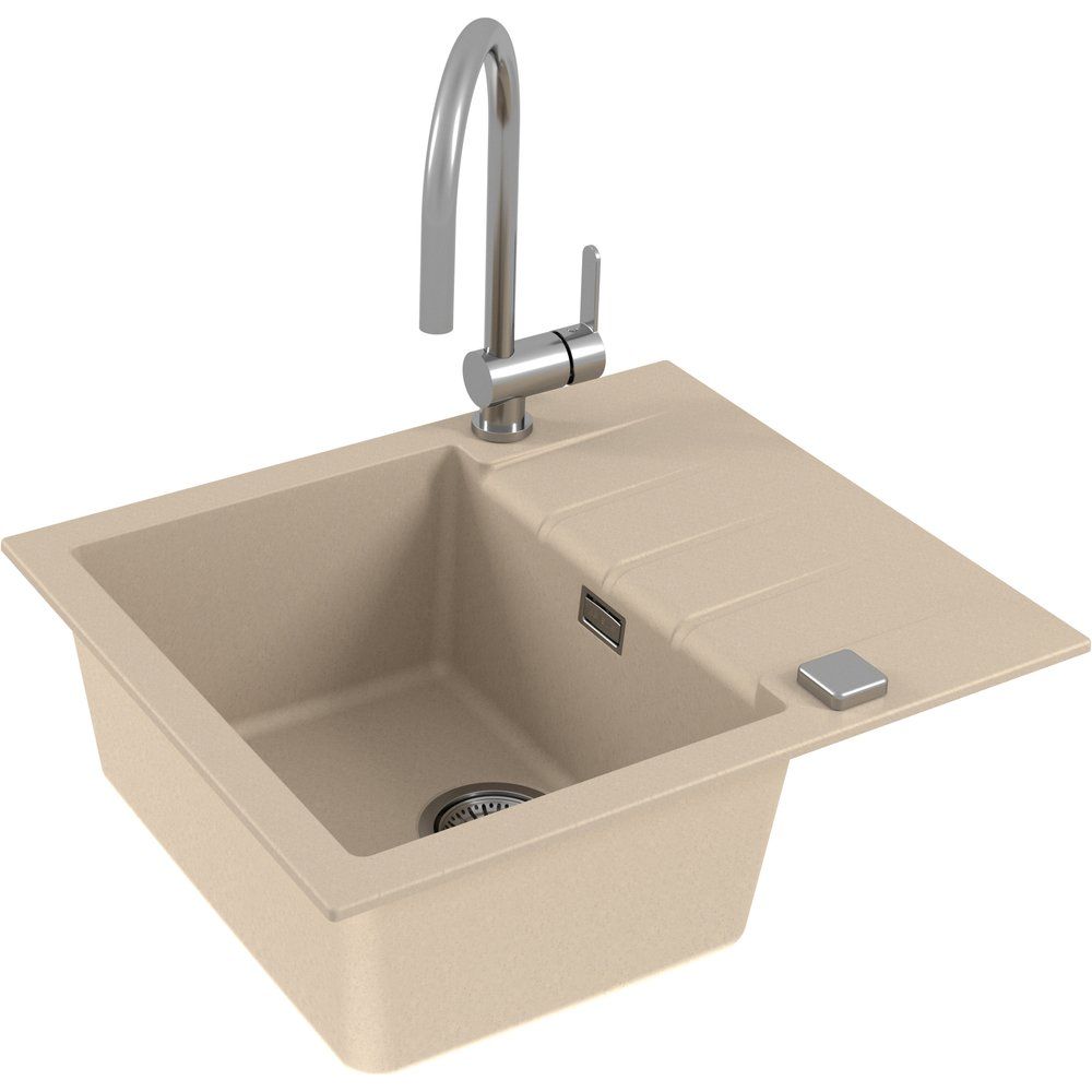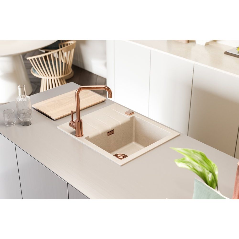Мойка кухонная Alveus Cadit Granital 10 terra прекрасно вписывается в интерьеры небольших кухонь, где каждый элемент должен иметь не только эстетическую ценность, но и функциональную. Изготовленная из инновационного искусственного гранита, эта модель сочетает в себе практичность и стиль. Её оборачиваемая конструкция и практичное крыло обеспечивают удобство пользования, а благодаря термостойкости вы можете сливать в неё кипящую воду, не опасаясь повреждений. Гладкая непористая поверхность мойки упрощает уход за ней, быстро избавляет от загрязнений и препятствует возникновению неприятных запахов. Дополнительный комфорт обеспечивает корзинчатый вентиль и автоматический донный клапан, которые упрощают удаление пищевых отходов и управление сливом.