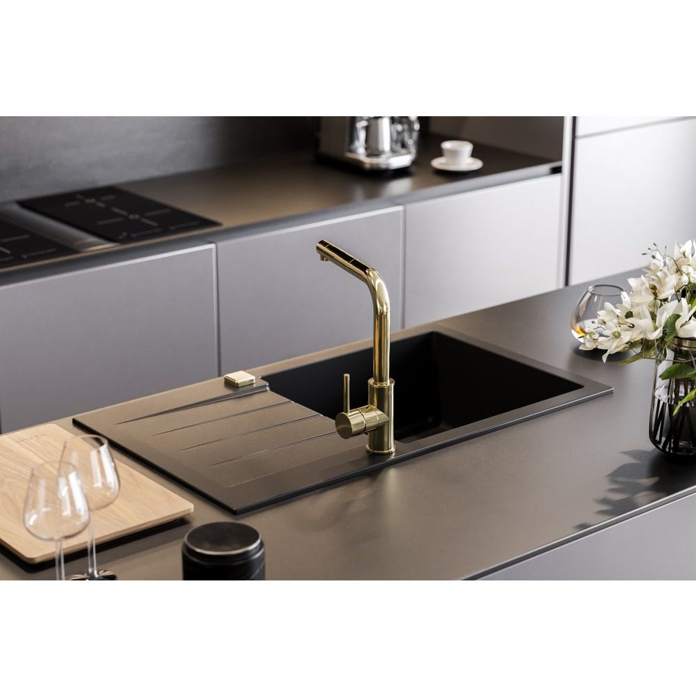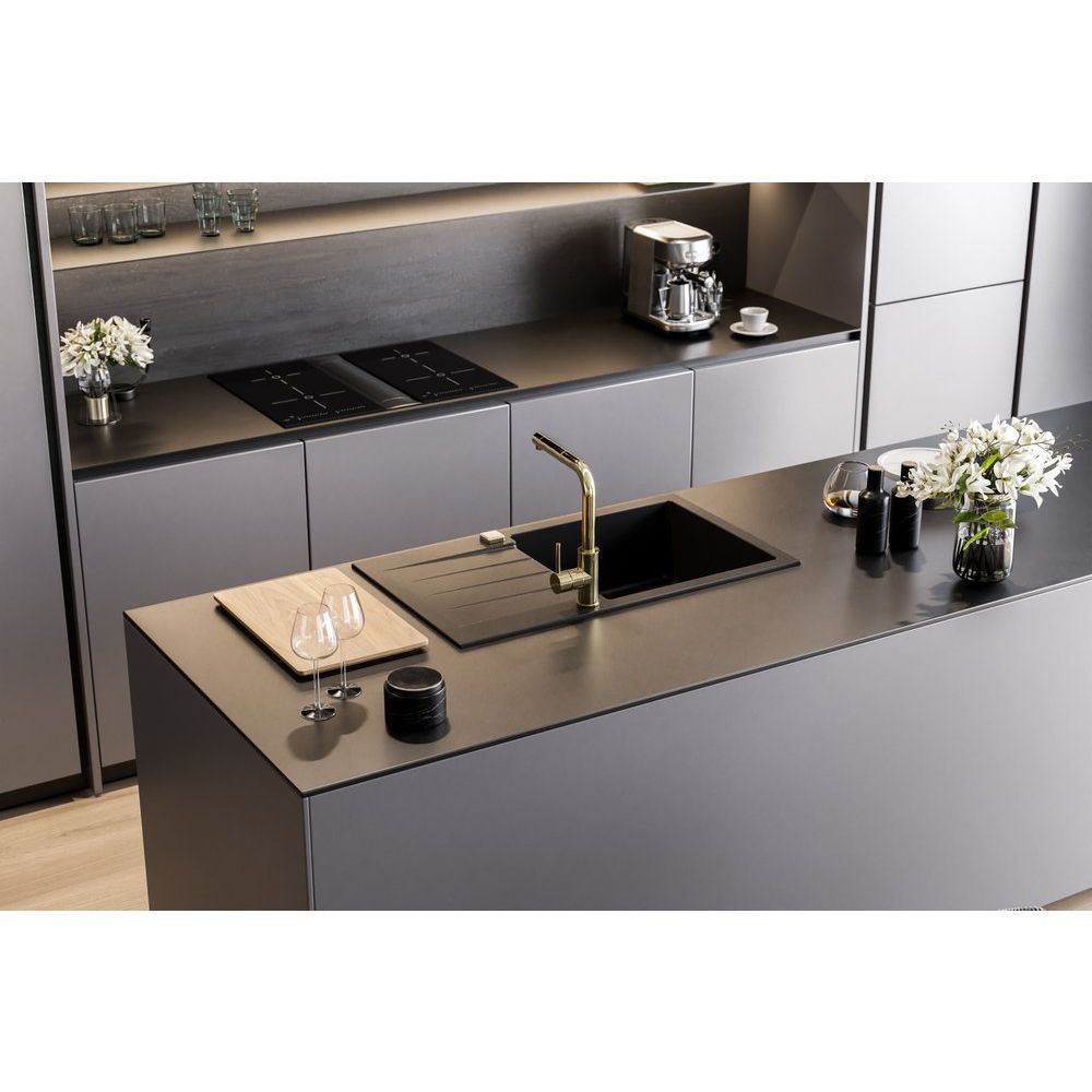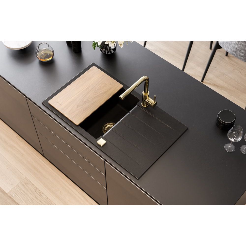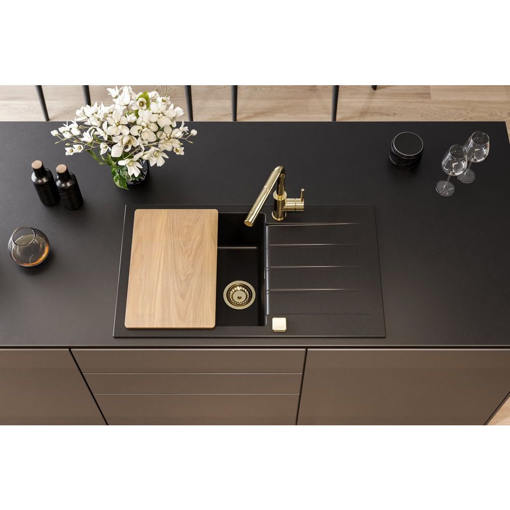 Создать функциональную рабочую зону на кухне поможет мойка Alveus Cadit Granital. Она изготовлена из высококачественного композитного материала, соответствующего всем санитарным нормам. Прямоугольная чаша оптимальной глубины позволяет без разбрызгивания мыть и наполнять водой габаритные кастрюли и сковороды. Не растрескивается при случайных ударах и сливании кипятка. Автоматический донный клапан позволяет при необходимости замачивать грязную посуду. На ребристом крыле не скапливается вода. На матовой поверхности незаметны царапины и загрязнения, она не требует специального ухода и сохраняет первозданный внешний вид на протяжении всего срока службы.