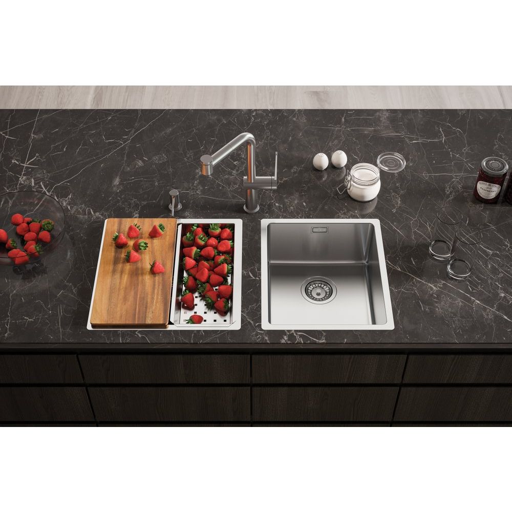 Габариты мойки составляют 44x44x19,5 см, а размеры чаши — 40x40 см, что делает её оптимальной для установки. Борт мойки находится на одном уровне со столешницей, обеспечивая более плавный и стильный вид. Мойка выполнена из полированной нержавеющей стали с диаметром слива 9 см. В комплекте идет сливная арматура и сифон, так что можно сразу приступить к установке. Товар производится в Словении и обладает пятилетней гарантией качества.