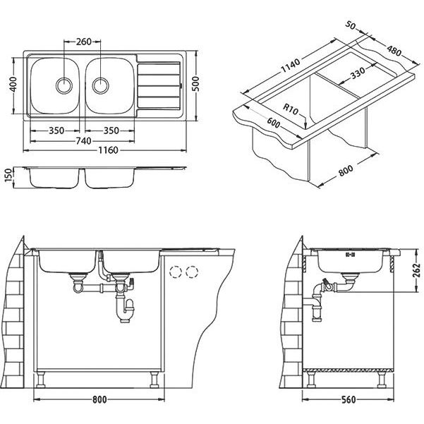 Важно отметить, что Alveus Line 100 оснащена всем необходимым для простой и быстрой установки: сливная арматура и сифон уже в комплекте. Это значительно упрощает процесс монтажа и позволяет начать пользоваться мойкой сразу после установки. Обратите внимание на отсутствие готовых отверстий, это позволит вам самостоятельно выбрать оптимальное местоположение аксессуаров.