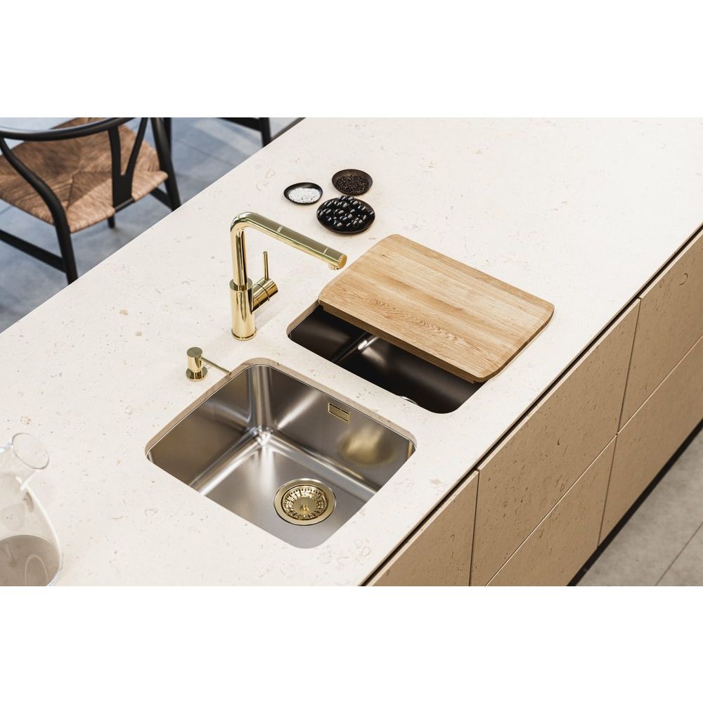 Идеальным решением для небольшой кухни станет кухонная мойка Alveus Luno 30. Элегантная модель выполнена из высококачественной нержавеющей стали AISI 304 с изысканной матовой поверхностью. Такая мойка не только практична в уходе, но и добавляет стильности вашему интерьеру. Компактная чаша глубиной 18 см обеспечивает комфорт при мытье посуды, а встроенный слив-перелив и корзинчатый вентиль делают эксплуатацию легкой и удобной.