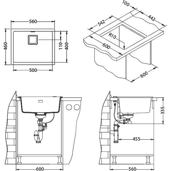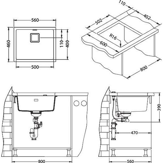 Габариты мойки составляют 56x46x20 см, а размер чаши — 50x40 см, что подходит для большинства рабочих поверхностей. Установить мойку можно как выше, так и ниже уровня столешницы. Слив-перелив, корзинчатый вентиль и автоматический клапан входят в комплект. Диаметр слива — 9 см, изделие без готовых отверстий предоставляет возможность гибкой установки. Матовая поверхность подчеркивает элегантность изделия. Гарантируется 5 лет уверенности благодаря качеству от производителя из Словении.
