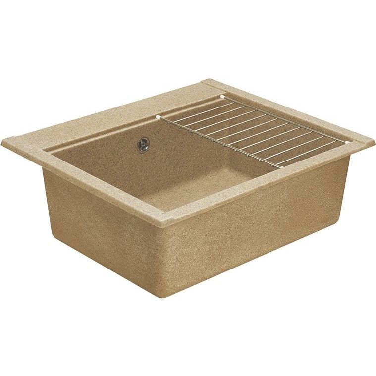 Мойка имеет размеры 60,2x51,7x21,8 см, а чаша — 49,7x38,7 см, что обеспечивает достаточно места для комфортного использования. Изделие встраивается выше уровня столешницы, что удобно для монтажа. Мойка изготовлена из искусственного мрамора и имеет матовую поверхность. В комплект входят слив-перелив и корзинчатый вентиль с диаметром слива 9 см. Предусмотрено три намеченных отверстия под смеситель, без готовых отверстий. Оснащение включает сливную арматуру и сифон. Система антибактериальной защиты обеспечивает дополнительный уровень гигиеничности. Гарантия на изделие составляет 5 лет, страна производства — Россия.