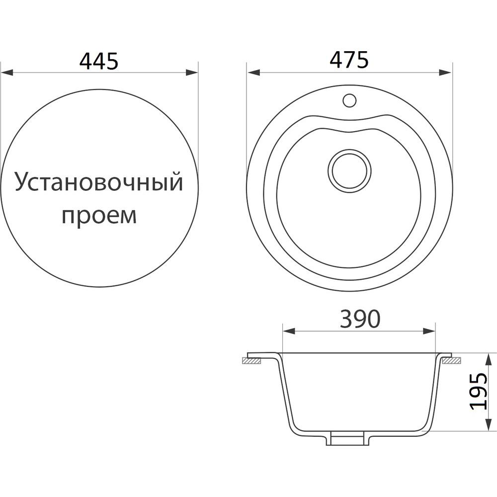 Эта мойка обладает размерами 47,5x47,5x19,5 см и чашей с размерами 39x35 см, что делает её идеальной для любой кухни. Она встраивается выше уровня столешницы, что даёт возможность легко интегрировать её в любую кухонную гарнитуру. Изготовленная из искусственного мрамора, мойка имеет матовую поверхность, которая устойчива к царапинам. В комплект входит слив-перелив и корзинчатый вентиль, а также сифон. Диаметр слива 9 см, и она уже имеет одно готовое отверстие под смеситель. Произведена в России и предоставляется с гарантией 2 года.
