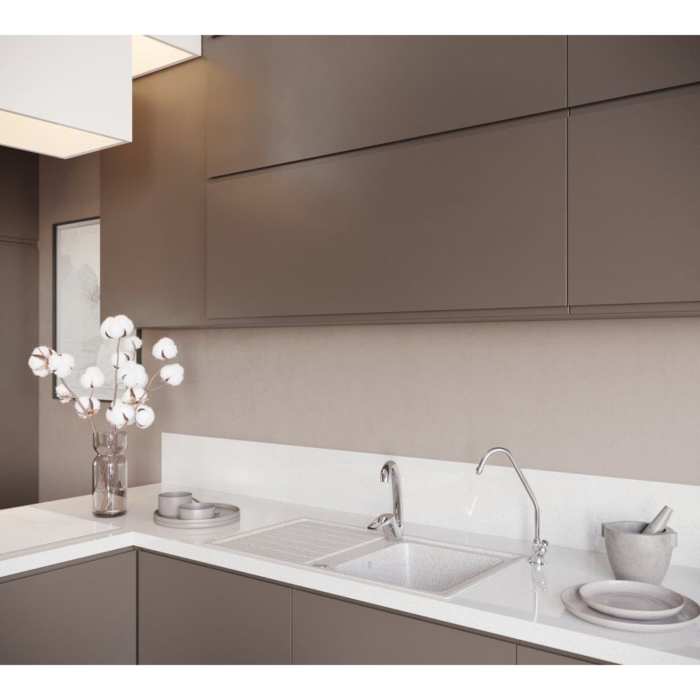 - Встраивается выше уровня столешницы, что упрощает установку и обслуживание.