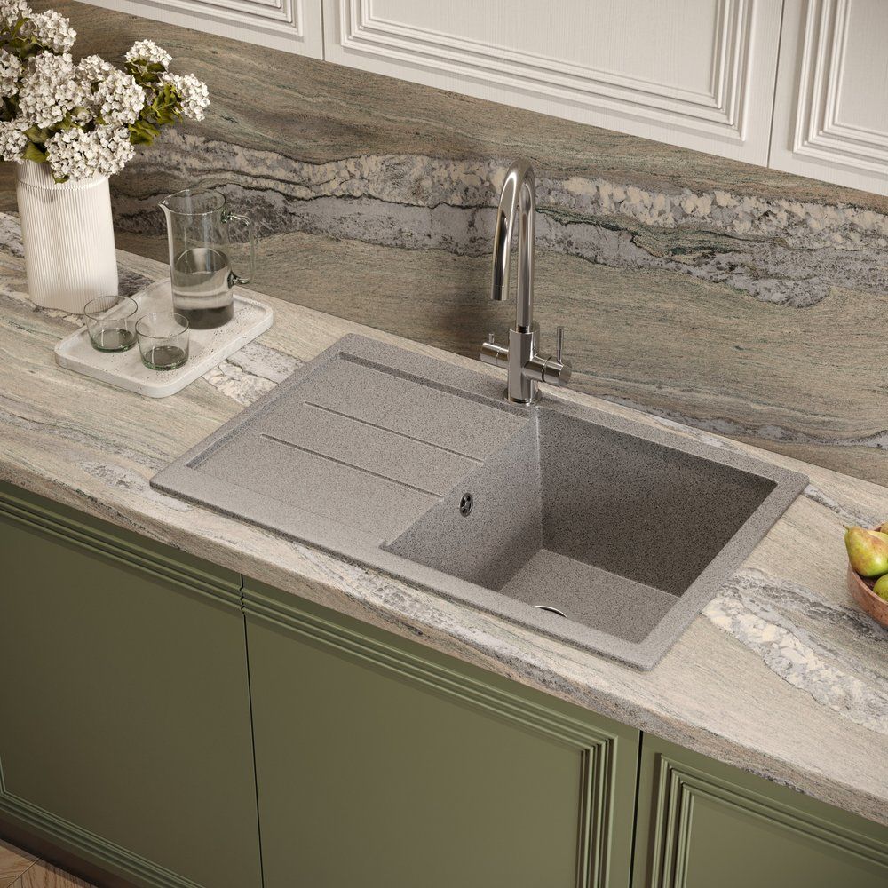 Мойка кухонная Domaci Бьелла DMC-25-309 в элегантном темно-сером цвете станет стильным и функциональным дополнением вашей кухни. Благодаря двухконтурной поверхности чаши она не просто привлекает внимание, но и обеспечивает комфортную работу с минимальным разбрызгиванием воды, даже при сильном напоре. Гелькоутовый верхний слой формирует прочное, декоративное покрытие с антибактериальными свойствами, а сочетание мраморной крошки и акриловых смол обеспечивает удивительную прочность.