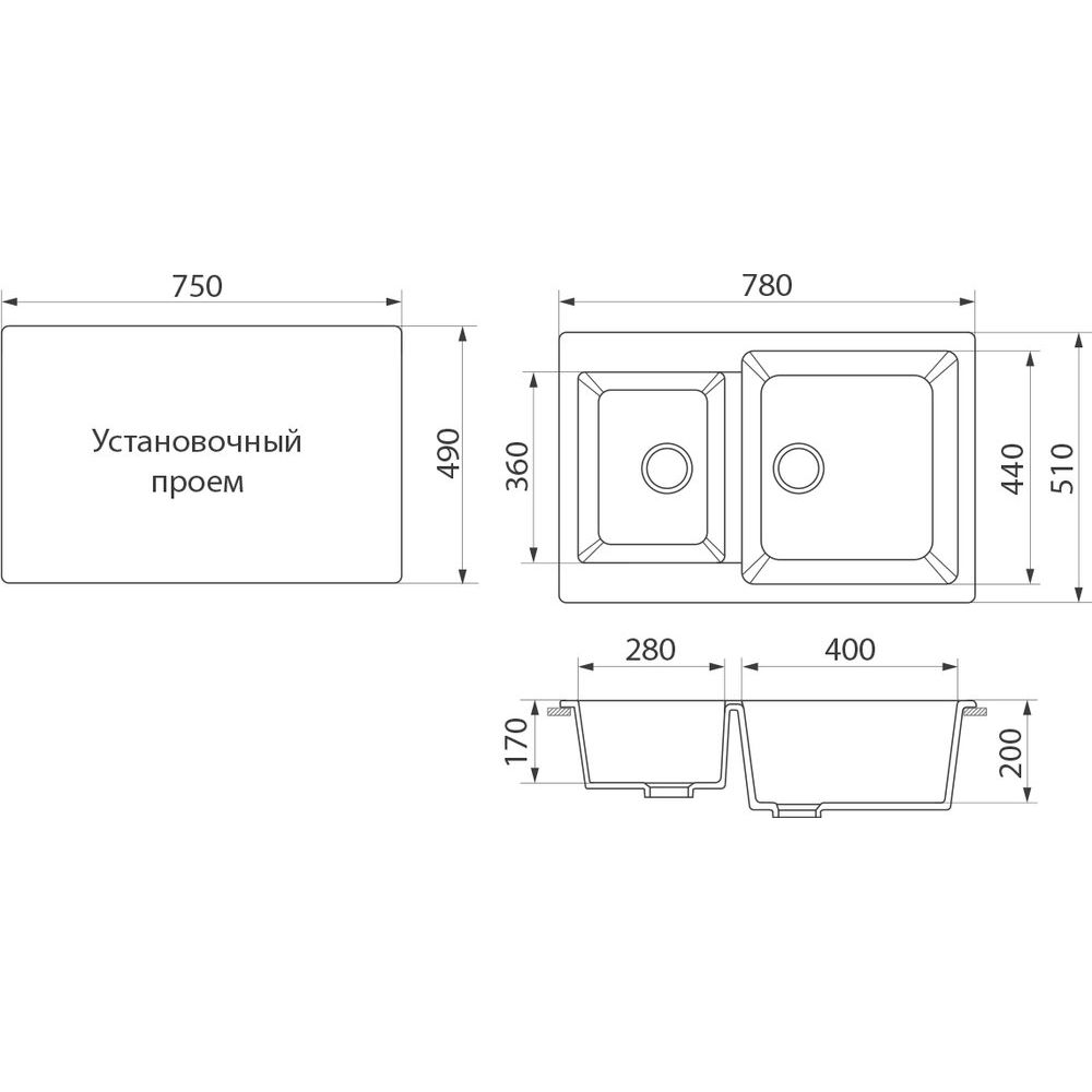 Габариты мойки составляют 78х51х20 см, а размеры чаши — 40х44 см. Мойка встраивается выше уровня столешницы и выполнена из искусственного мрамора с матовой поверхностью. В комплект входит слив-перелив, корзинчатый вентиль и сифон. Диаметр слива составляет 9 см. Изделие не имееет готовых отверстий, что позволяет адаптировать его под ваши нужды. Мойка оснащена антибактериальной защитой и поставляется с гарантией на 2 года. Производится в России.