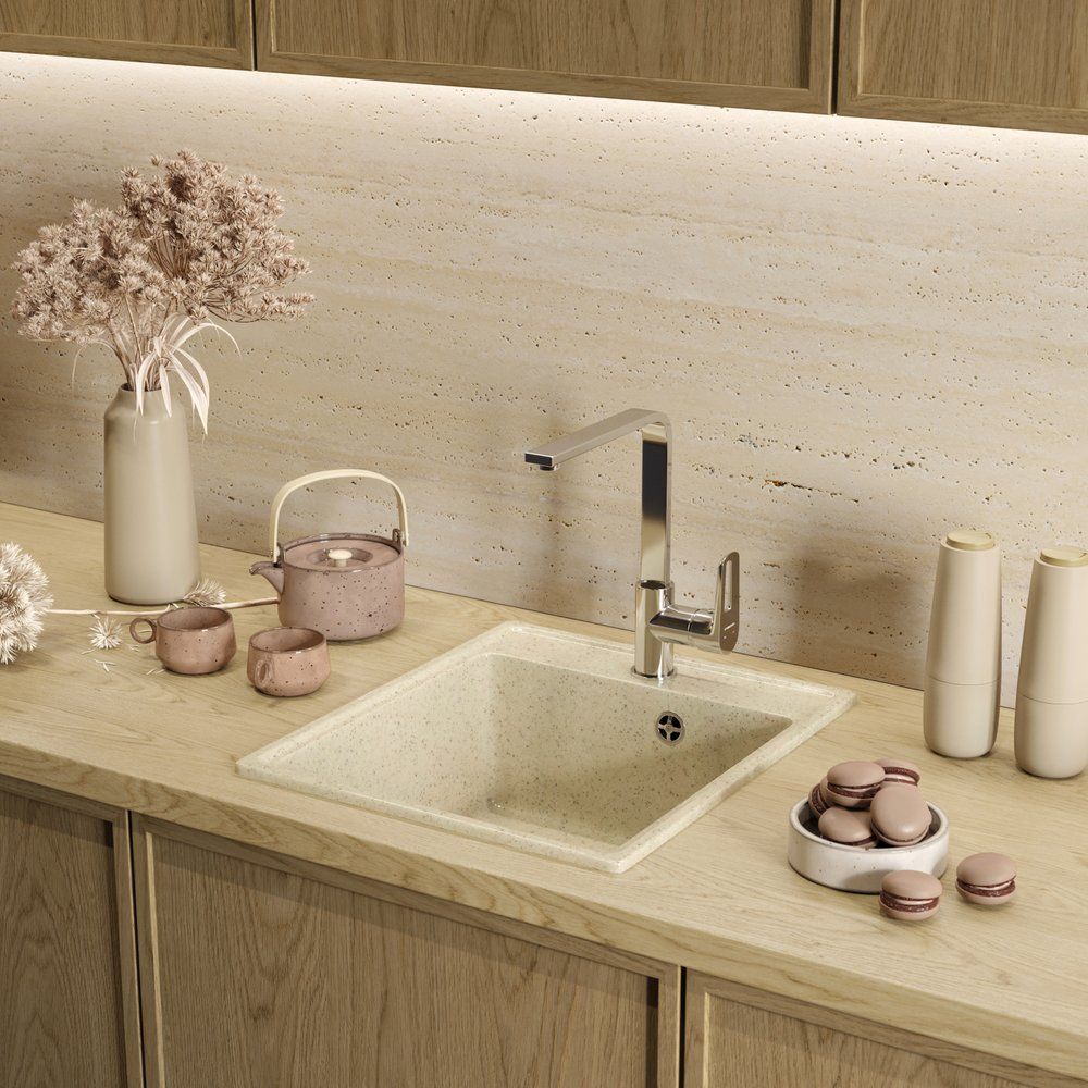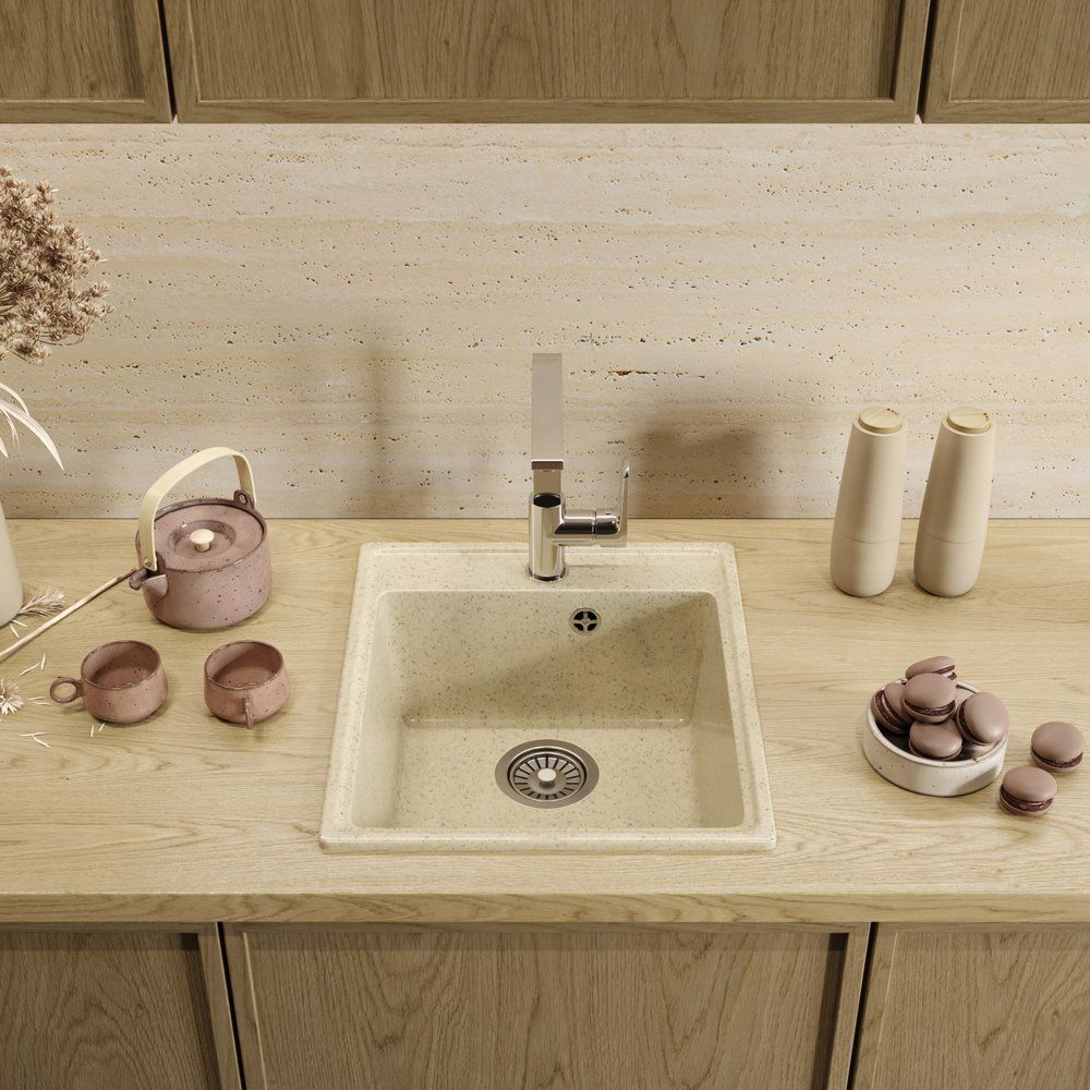 Представляем вашему вниманию кухонную мойку Domaci Палермо PR-425-002, в элегантном бежевом цвете. Эта мойка станет стильным и функциональным дополнением вашей кухни, органично вписываясь в интерьер и создавая комфортное пространство для повседневных задач. Изготовленная из высокопрочного искусственного мрамора, она не только привлекает внимание своей глянцевой поверхностью, но и демонстрирует исключительную стойкость к износу.