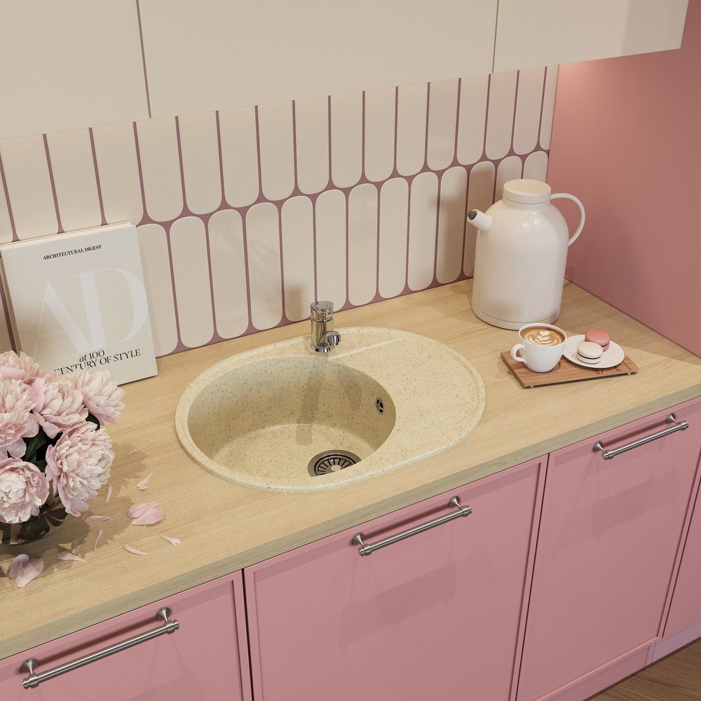 Мойка кухонная Domaci Палермо PR-610-002 в цвете беж — это стилевое решение для вашей кухни. Выполненная из высокопрочного искусственного мрамора, она соединяет в себе надежность и эстетичный внешний вид. Глянцевая поверхность и изысканные бежевые оттенки делают её отличным дополнением к любой кухне. Эта мойка не только красива, но и практична — слив-перелив и корзинчатый вентиль входят в комплект, что делает установку и использование максимально удобными.