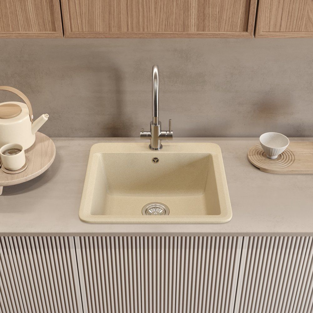 Кухонная мойка Domaci Парма V-800 выполнена из высококачественного искусственного мрамора, что обеспечивает ее длительный срок службы и стойкость к внешним воздействиям. Габариты изделия составляют 55,3x50,3x22,4 см, что позволяет обеспечить комфортное использование даже в ограниченном пространстве. Встроенная чаша имеет размеры 47,5x38,2 см и оснащена сливом-переливом, а диаметр слива составляет 9 см. Возможность установки сверху столешницы обеспечивает легкость монтажа. В комплект входят все необходимые компоненты: сливная арматура, сифон и корзинчатый вентиль. Также предусмотрено одно готовое отверстие под смеситель.