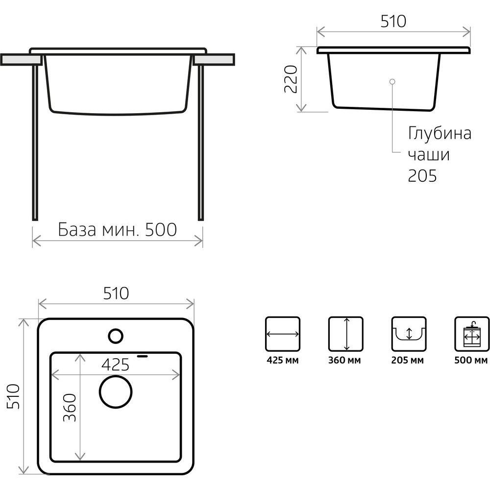 Красивая и функциональная, мойка Domaci Римини DG К-435 имеет размеры 51x51x22 см, что идеально подходит даже для небольших кухонь. Ее чаша с размерами 42,5x36 см обеспечивает удобное мытье посуды. Устанавливается выше уровня столешницы, обеспечивая легкий доступ и современный вид. Мойка оснащена сливом-переливом и корзинчатым вентилем с диаметром слива 9 см. В комплекте идет сливная арматура и сифон, а также предусмотрено 1 готовое отверстие под смеситель.