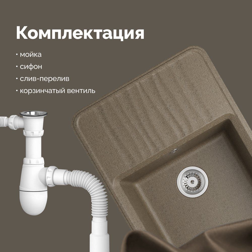 - Практичность: Комплектуется слив-переливом и вентилем с корзинчатой сеткой для удобства в эксплуатации.