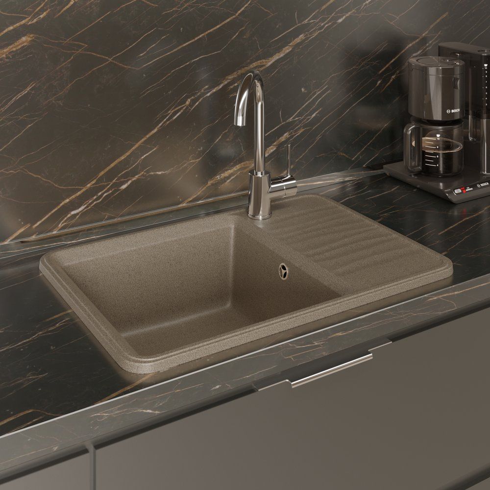 - Стиль и Элегантность: Изящный бежевый цвет и матовая поверхность легко сочетаются со всеми фартуковыми и рабочими поверхностями.