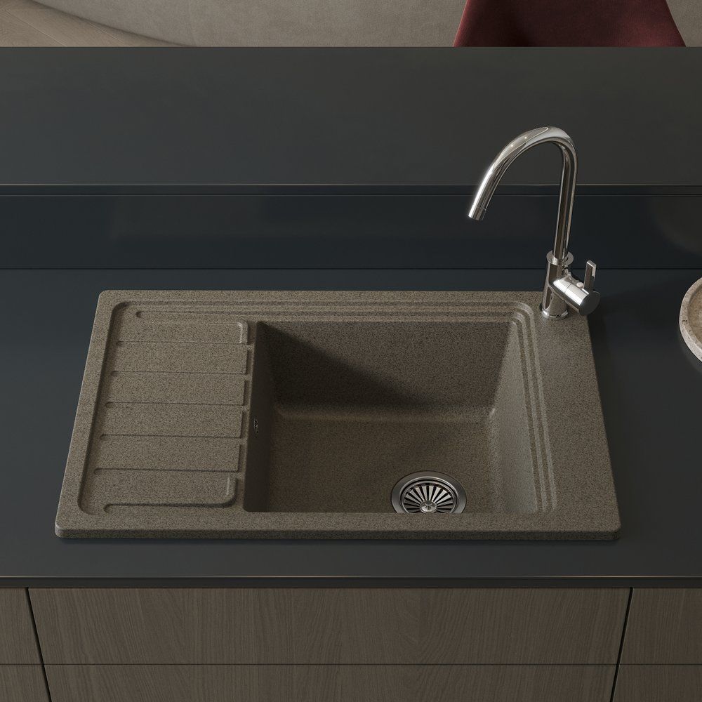 Мойка кухонная Domaci Римини DG U-435 в бежевом цвете гармонично сочетает в себе элегантность дизайна и превосходство технологии. Созданная из кварца, она привлекает внимание своей строгой матовой текстурой и современным стилем, который легко вписывается в любой интерьер. Благодаря удобным габаритам, адаптированным для установки выше уровня столешницы, мойка не только выглядит стильно, но и демонстрирует свою функциональность в повседневной жизни.