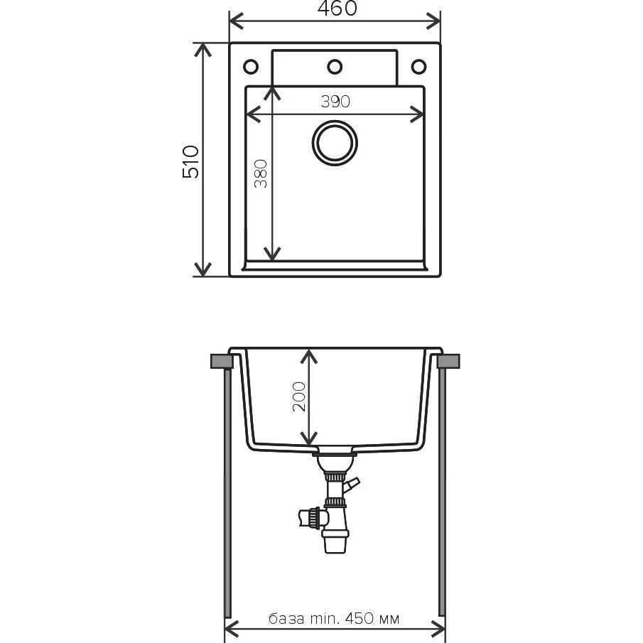 Мойка имеет габариты 46x51x20 см, а размеры чаши составляют 39x38 см, что обеспечивает оптимальный объем для любых кухонных задач. Прочная конструкция дополнена сливной арматурой и сифоном, поэтому вам не придется тратиться на дополнительные аксессуары. Диаметр слива составляет 9.2 см, что способствует быстрому отходу воды. Для установки смесителя предусмотрено одно намеченное отверстие, однако дополнительных готовых отверстий нет, чтобы предоставить вам свободу в выборе конфигурации.