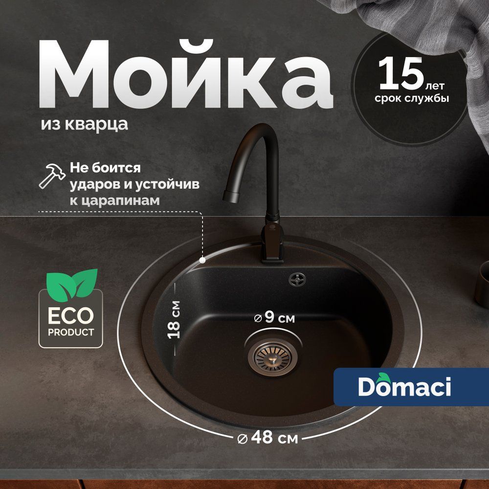 Кухонная мойка Domaci Савона QB 480 уголь — это современное сочетание элегантного дизайна и практичности для вашей кухни. Выполненная из высококачественного кварца, она отличается не только стильным внешним видом, но и прочностью. Ее матовая поверхность подчеркивает благородство освещения, создавая уникальную атмосферу в рабочем пространстве.