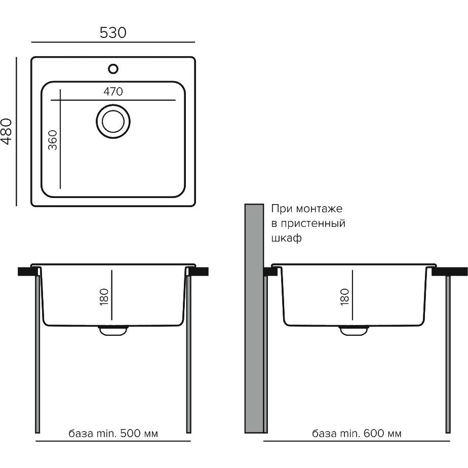 Размеры мойки составляют 53x48x18 см, а чаша имеет размеры 47x36 см, обеспечивая достаточно места для любых кухонных задач. Мойка встраивается выше уровня столешницы, что облегчает установку. Изготовлена из инновационного кварцевого материала с матовой отделкой и имеет один готовый отверстие под смеситель. Обратите внимание, что слив-перелив и корзинчатый вентиль приобретаются отдельно; диаметр слива составляет 9 см. Производство осуществляется в России, что гарантирует соблюдение высоких стандартов качества.
