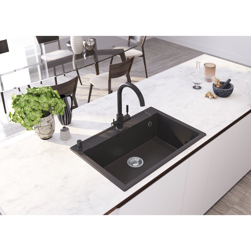 Кухонная мойка Domaci Савона РА 760 — это сочетание современного стиля и практичности, которые станут украшением вашей кухни. Стильная черная мойка из искусственного мрамора не только выглядит привлекательно, но и демонстрирует превосходную устойчивость к внешним воздействиям. Она специально разработана для встраивания выше уровня столешницы, что подчеркивает её современный дизайн и добавляет удобство в использовании.