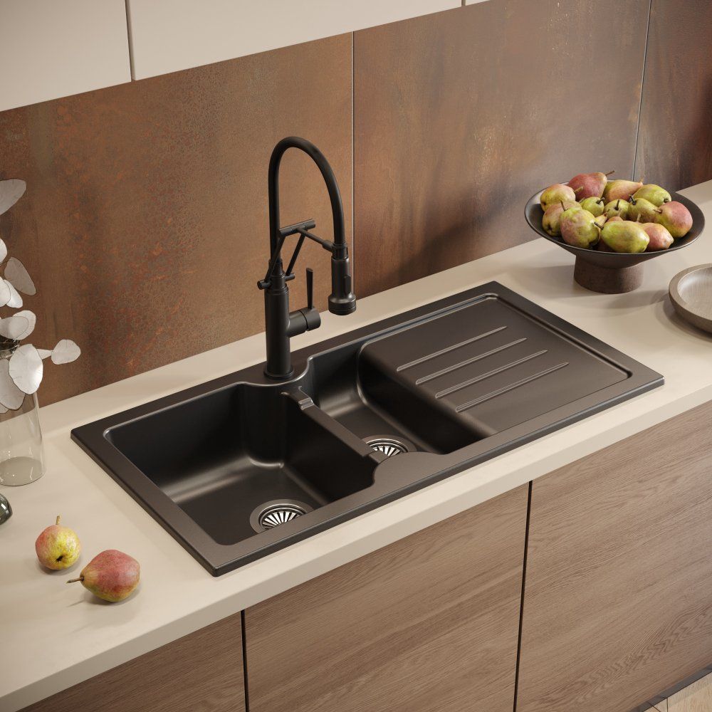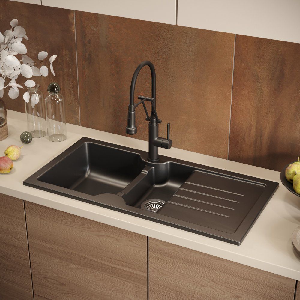Познакомьтесь с черной матовой кухонной мойкой Domaci «Сиена 54100-110» — идеальным решением для современной кухни. Эта продуманная модель не только способствует функциональному использованию пространства, но и делает ваш рабочий процесс на кухне более удобным. Две чаши разного размера оптимально подходят для разнообразных задач: большая чаша идеально подходит для мытья посуды, а маленькая — для разморозки, замачивания столовых приборов или легкого разогрева продуктов. Крыло с желобками для стока воды обеспечивает эффективную сушку и может быть установлено как справа, так и слева, благодаря оборачиваемости мойки. Изготовлена из ударопрочной и термостойкой керамики с антибактериальной защитой, что делает мойку надежным долгосрочным выбором для вашей кухни.