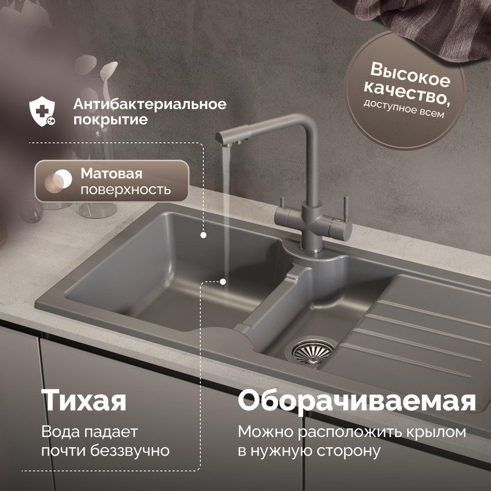 Откройте для себя новое измерение комфорта на кухне с встраиваемой мойкой Domaci «Сиена 54100-112». Эта стильная прямоугольная мойка отличается наличием двух чаш: глубокой, идеально подходящей для мытья посуды, и маленькой, предназначенной для разморозки или подогрева продуктов. Долговечное керамическое исполнение гарантирует стойкость к ударам, царапинам и тепловому воздействию. Мытье посуды никогда еще не было столь бесшумным и комфортным благодаря водоотталкивающей поверхности и антибактериальному покрытию. Антрацитовый оттенок добавляет изысканности, а надежное турецкое качество — уверенности в правильности выбора. Длительный срок гарантии в 10 лет подтверждает высокую надежность изделия.