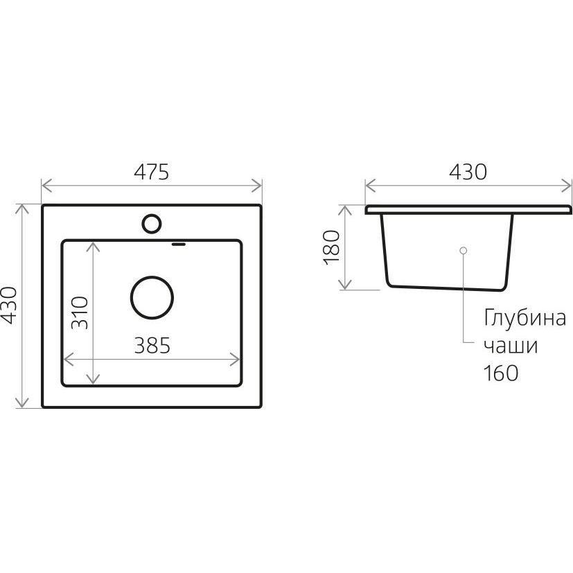Эта кухонная мойка имеет размеры 47,5x43x18 см и чашу размером 38,5x31 см, что делает ее универсальной для различных кухонных пространств. Мойка встраивается выше уровня столешницы, что облегчает уход за ней и позволяет достичь идеального примыкания. Она оборудована одним готовым отверстием под смеситель, диаметром отверстия для слива составляет 9 см. Для полноценной работы мойки вам понадобятся слив-перелив и корзинчатый вентиль, которые приобретаются отдельно. Гарантия на мойку составляет 2 года, что подтверждает ее надежность и качество.