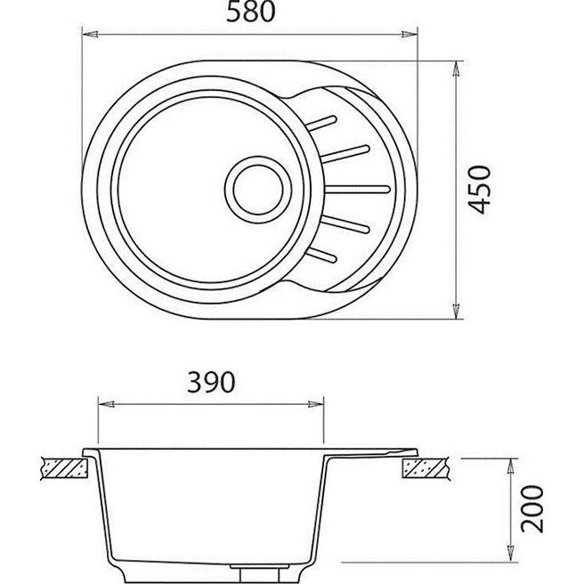 Сифон уже идет в комплекте с мойкой, что упрощает установку и дальнейшую эксплуатацию. Обратите внимание, что модель не имеет готовых отверстий, что позволяет при необходимости адаптировать мойку под особенности вашей столешницы.