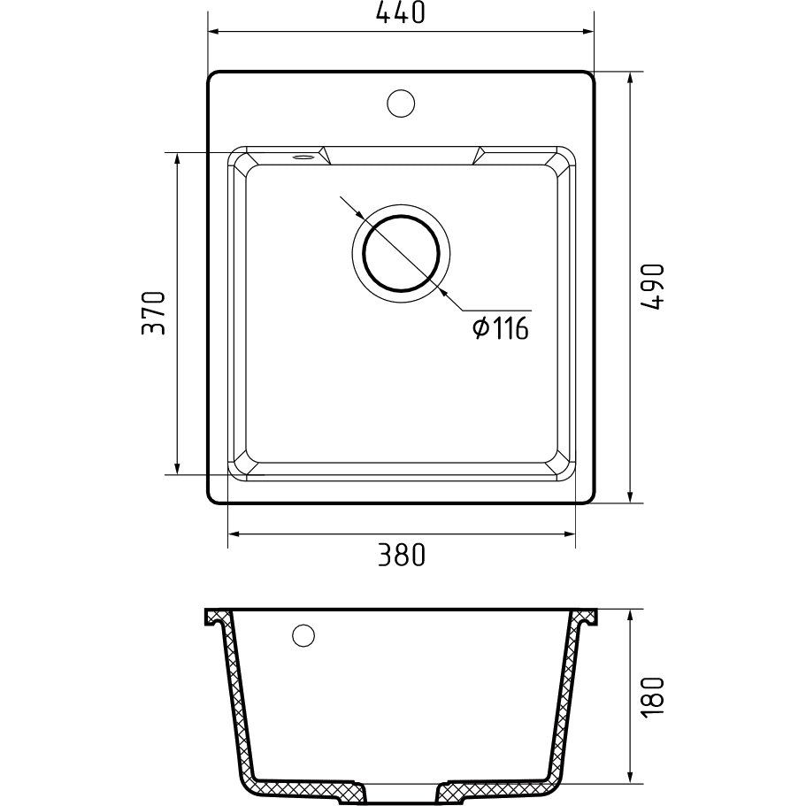Мойка имеет готовое отверстие под смеситель и оснащена сливной арматурой для легкой установки. Диаметр сливного отверстия составляет 8.89 см, что обеспечивает быстрое и эффективное удаление воды. Обратите внимание, что корзинчатый вентиль необходимо приобретать отдельно. Изделие производится в России, что гарантирует высокий стандарт качества.