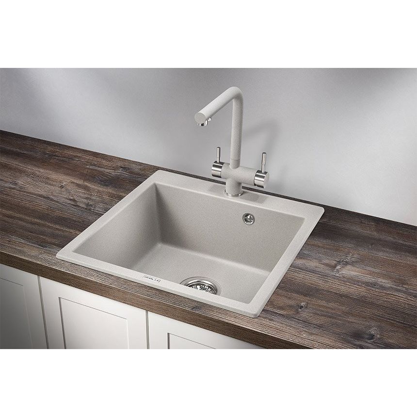 Мойка имеет габариты 51x52x20 см, чаша — 46x42 см, что делает её компактной и удобной для установки. Она встраивается выше уровня столешницы, изготовлена из искусственного гранита с матовой отделкой. Слив-перелив и корзинчатый вентиль включены в комплект, а диаметр слива составляет 9.2 см. Мойка не содержит готовых отверстий, но имеет намеченное отверстие под смеситель. Оснащена сливной арматурой и сифоном, что обеспечивает легкое подключение. Продукция произведена в России и имеет гарантию на 5 лет.