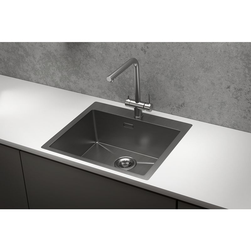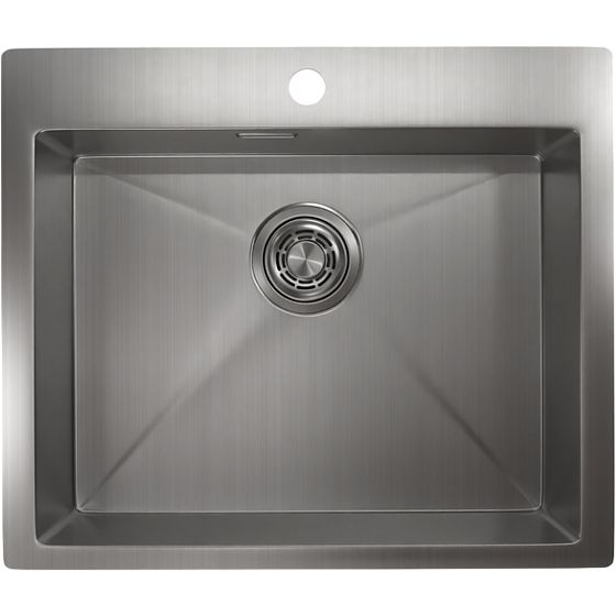 Мойка имеет габариты 59x51x21 см, что делает её вместительной и удобной в использовании. Габариты чаши составляют 55x54 см, что позволяет комфортно мыть даже крупные предметы. Встраивается выше уровня столешницы, что упрощает монтаж. В комплектацию входят слив-перелив и корзинчатый вентиль с диаметром слива 9.2 см. Имеет одно готовое отверстие под смеситель, что позволяет установить выбранную вами модель без дополнительных усилий.
