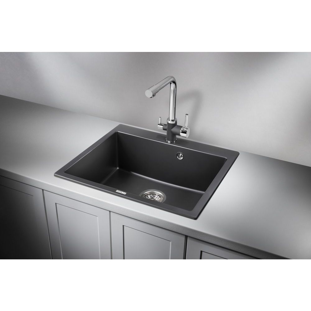 Учтите, что мойка поставляется без готовых отверстий для установки смесителя, но на поверхности уже предусмотрено три намеченных точки для их будущего создания. Настоятельно рекомендуем обращаться к профессионалам для выполнения этой задачи, чтобы избежать повреждения материала. Сифон уже включен в комплект, поэтому вы сразу сможете установить мойку без дополнительных затрат.