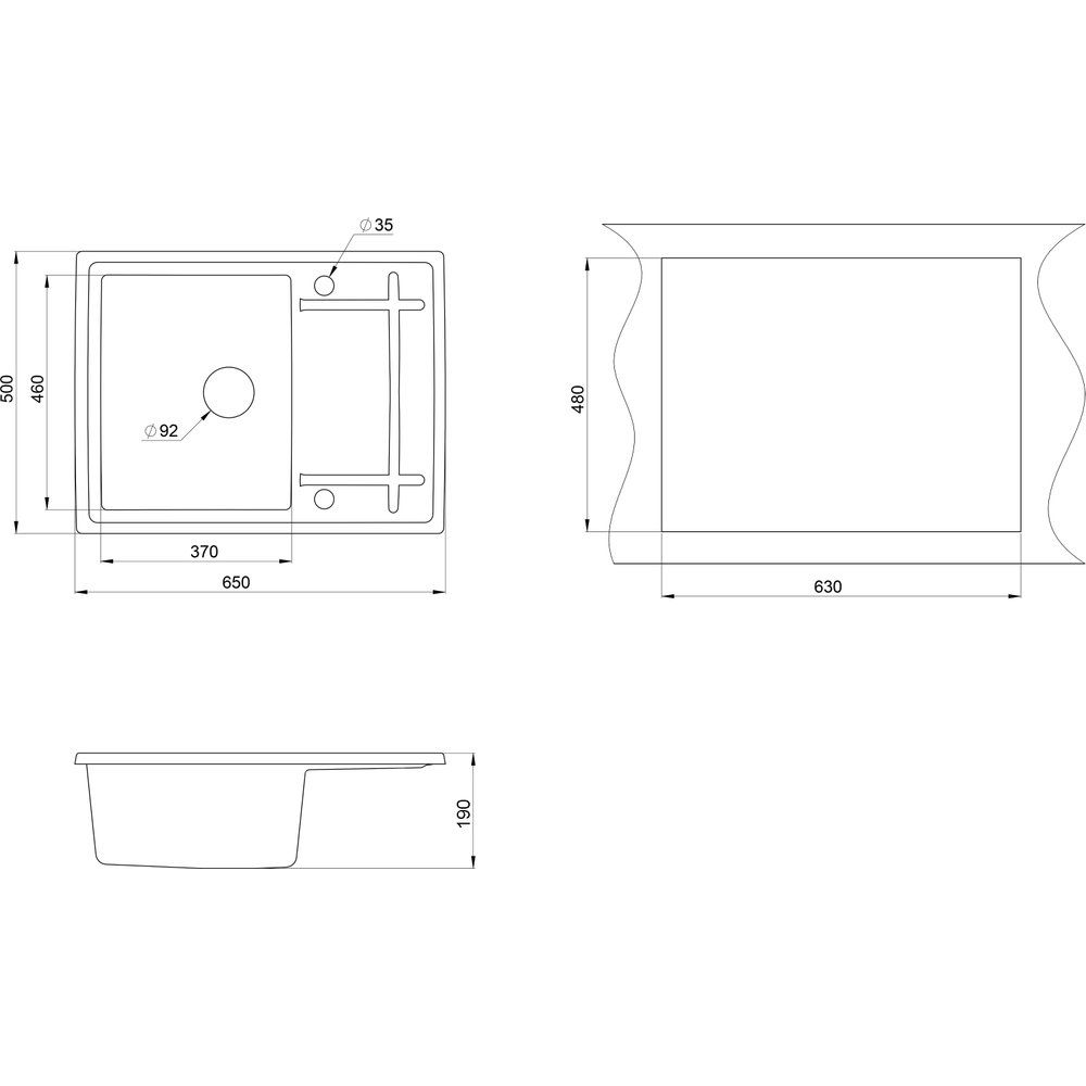 Эта модель обладает габаритами 65x50x19 см, а чаша — 37x46 см, что делает её удобной и вместительной. Она устанавливается выше уровня столешницы, обеспечивая дополнительную защиту от протечек. Мойка изготовлена из матового искусственного гранита, что придает ей современный вид. В комплекте идет слив-перелив и корзинчатый вентиль с диаметром слива 9.2 см. Для удобства подключен сифон и сливная арматура, а гарантия производителя составляет 5 лет.