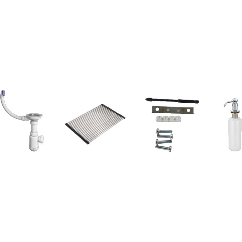 - Комплект поставки включает все необходимое для монтажа и использования: слив-перелив, корзинчатый вентиль и даже сушилка ролл-мат.