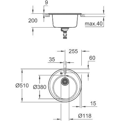 Габариты мойки составляют 51x51x20 см, а размеры чаши — 38x38 см, что делает ее идеально подходящей для встраивания выше уровня столешницы. Мойка изготовлена из матового искусственного гранита, с диаметром слива 11,8 см и одним готовым отверстием для установки смесителя. В комплекте идут сливная арматура и сифон, а также клапан-автомат. Продукция с гарантией один год от производителя из Германии.