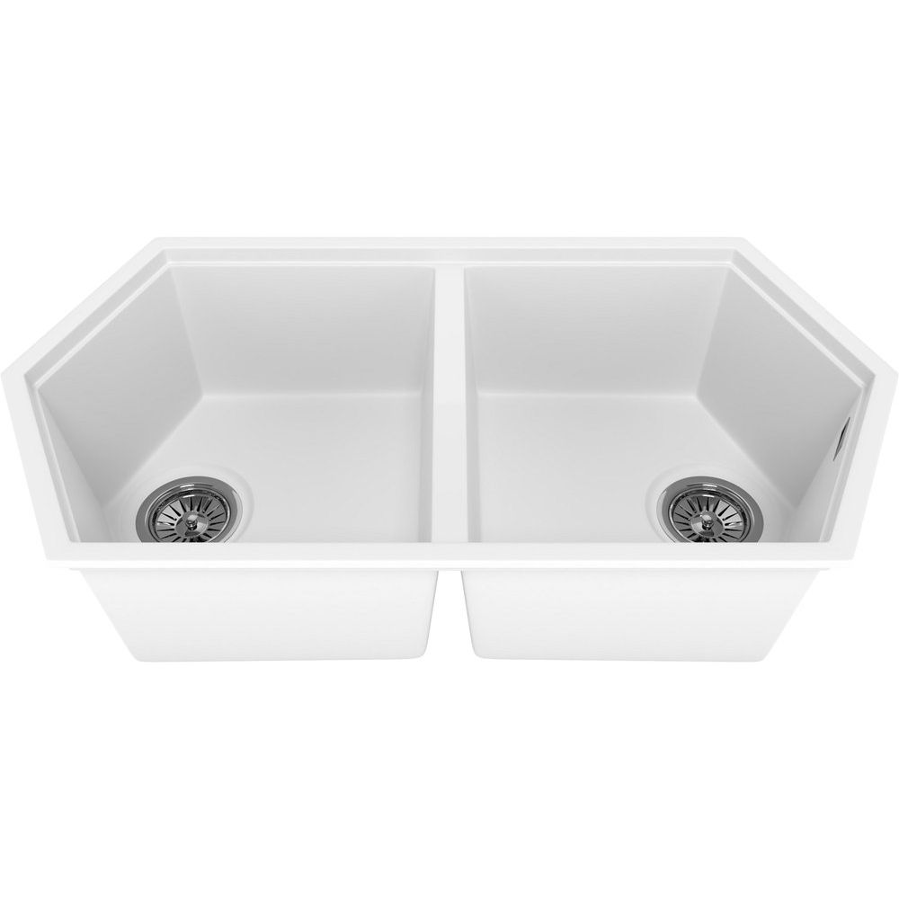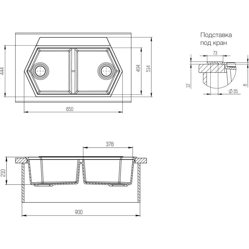 Мойка имеет размеры 85x44,4x22,2 см и предназначена для установки выше уровня столешницы, что позволяет оптимизировать пространство. Чаши мойки размером 37,8x40,4 см идеально подходят для работы с крупной посудой. Изготовлена из искусственного гранита и для удобства ухода обладает матовой поверхностью. В комплект входят слив-перелив и корзинчатый вентиль, которые делают мойку еще более удобной в использовании. Диаметр слива составляет 9 см, благодаря чему обеспечивается быстрая пропускная способность.