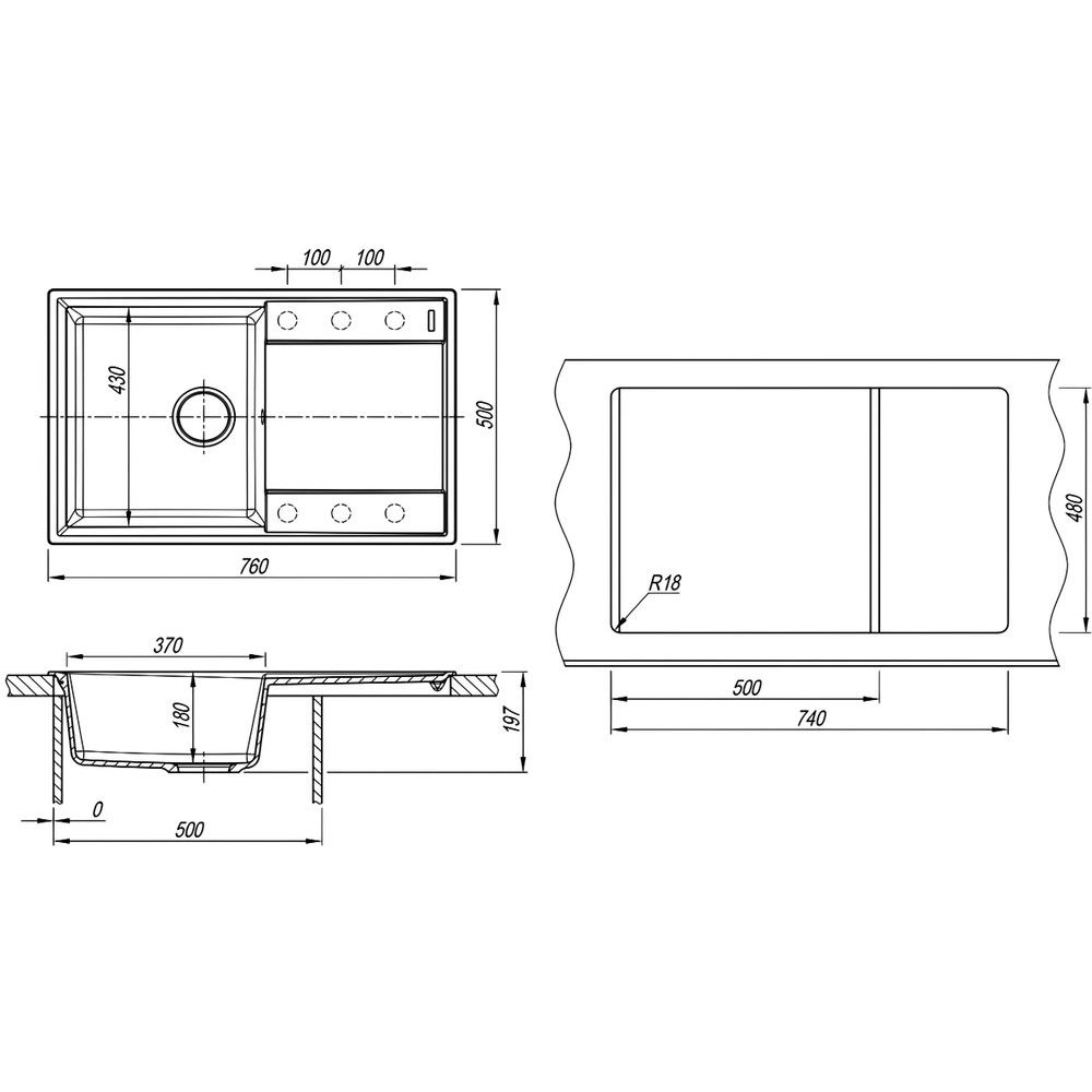 Мойка кухонная Lemark Imandra 760 имеет размеры 76x50x19,7 см и вместительную чашу 37x43 см. Матовая поверхность из искусственного гранита придает изделию стильный вид и обеспечивает долговечность. Благодаря 6 намеченным отверстиям под смеситель, вы самостоятельно можете выбрать наиболее удобное для вас расположение, но для их создания рекомендуется обратиться к специалистам.