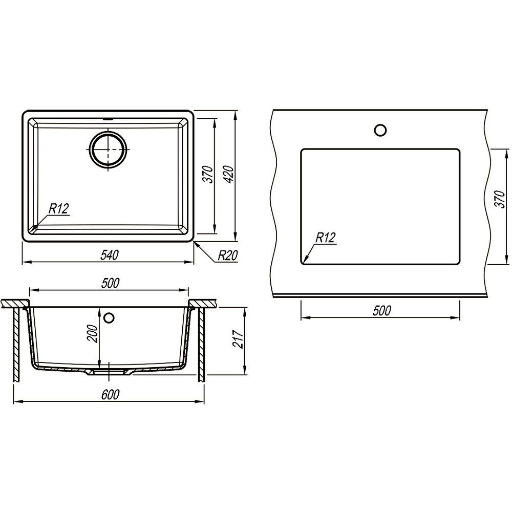 Размеры мойки составляют 54x42x21,7 см, что оптимально подходит для большинства кухонь. Чаша имеет размеры 50x37 см, обеспечивая удобное использование даже для больших кастрюль и сковород. Диаметр слива 9 см, что способствует быстрому стоку воды. Комплектуется слив-переливом и корзинчатым вентилем для удобства эксплуатации. Мойка не имеет готовых отверстий, что позволяет гибко настроить ее под свои нужды.