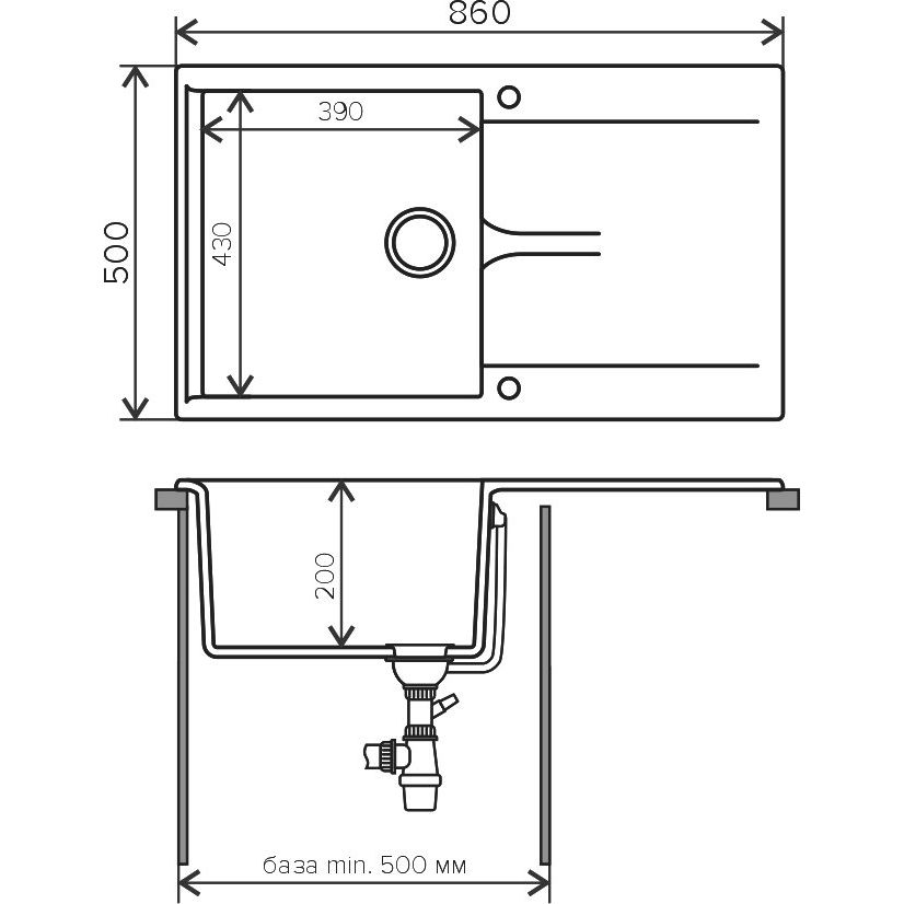 Компактные размеры мойки – 86x50x20 см – обеспечивают легкость её встраивания выше уровня столешницы. Размер чаши составляет 39x43 см, что позволяет удобно расположить большие предметы при мытье. В комплект входит надежный сифон и сливная арматура, а также предусмотрены один наметочный отверстие для установки смесителя. Диаметр слива составляет 9.2 см, что гарантирует эффективное удаление воды. Продукция произведена в России и оснащена трехлетней гарантией, что подтверждает её качество и долговечность.